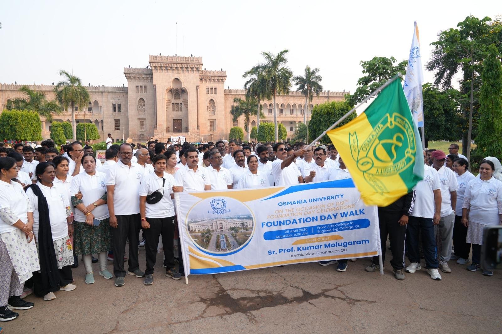 ఉస్మానియా యూనివర్సిటీ , ఏప్రిల్ 25 ( వార్త సంధ్య): ఏప్రిల్ 26 న ఠాగూర్ ఆడిటోరియం లో ఉస్మానియా విశ్వవిద్యాలయ 109 వ వ్యవస్థాపక వేడుకలను గతాన్ని స్మరిస్తూ, భవిష్యత్తుకు బాటలు వేస్తూ నినాదంతో ఆర్ట్స్ కళాశాల నుంచి ఇంజినీరింగ్ కళాశాల వరకు పౌండేషన్ డే వాక్ ను ఓయూ ఉపకులపతి ఆచార్య కుమార్ మొలుగరం జెండా ఊపి ప్రారంభించారు. అనంతరం మాట్లాడుతూ ఈ సజీవ చరిత్రలో మనం భాగస్వాములమంటూ, నాణ్యమైన విద్యను అందించాలనే సంకల్పంతో ఈ సంస్థకు పునాది వేసిన హైదరాబాద్ ఏడవ నిజాం మీర్ ఉస్మాన్ అలీ ఖాన్ దూరదృష్టికి రుణపడి ఉన్నామని, ఓయూ వ్యవస్థాపక దినోత్సవం జరుపుకోవటం కేవలం ఒక్క రోజు వేడుక మాత్రమే కాదని తెలంగాణ రాష్ట్రానికి, ప్రపంచానికి ఉన్నత విద్యారంగంలో దిక్సూచిగా అత్యుత్తమ సేవలు అందించి , సమాజ శ్రేయస్సు కోసం పరిశోధనలు చేస్తూ, బాధ్యతాయుతమైన పౌరులను తీర్చిదిద్దుతున్న ఒక గొప్ప వారసత్వాన్ని గౌరవించుకోవడమని అన్నారు. విద్యార్థులు ప్రదర్శించిన సాంస్కృతిక కార్యక్రమాలు, విద్యార్థులు, వాలంటీర్లు చేసిన ఫ్లాష్ మాబ్స్, మెడ్లీ డ్యాన్స్ ప్రదర్శనలు వేడుకల్లో కొత్త ఉత్సాహాన్ని నింపాయి. ఈ కార్యక్రమంలో రిజిస్ట్రార్ ప్రొఫెసర్ జి. నరేష్ రెడ్డి, వైస్ ఛాన్సలర్ ఓఎస్డీ ప్రొఫెసర్ ఎస్. జితేంద్ర కుమార్ నాయక్, ఆర్గనైజింగ్ కమిటీ చైర్మన్ ప్రొఫెసర్ బి. సుధాకర్ రెడ్డి, కన్వీనర్ ప్రొఫెసర్ బి. లావణ్య , ప్రిన్సిపల్స్, డీన్లు, డైరెక్టర్లు, అధ్యాపకులు, ఉద్యోగ సంఘాల ప్రతినిధులు, ఉద్యోగులు, పరిశోధక విద్యార్థులు, విద్యార్థులు, ఎన్సిసి , ఎన్ఎస్ఎస్ వాలంటీర్లు సహా దాదాపు వెయ్యి మందికి పైగా పాల్గొన్నారు.